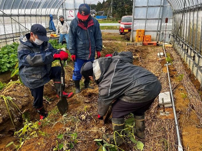 11月30日(木)、12月5日(火)に農事組合法人能登やまびこへ農業実習に行きました。実習では1日目は里芋と蕪の収穫をし、2日目には堆肥散布と蕪の収穫をしました。