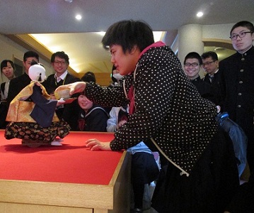 行先は、金沢港にある大野からくり記念館です。事前学習で「からくり」について調べて行きました。会場では、茶運び人形を見たり、人形を操作したり、知恵の輪に挑戦したりしました。皆さん夢中になって見て回りました。