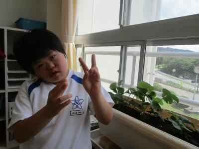 小学部6年教室で育てているイチゴとクワガタ・カブトムシです。