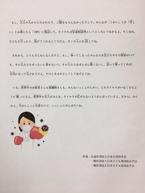 そんなお子様を支えてくださっている保護者の皆様へ。小児科学会から、メッセージが届いています。