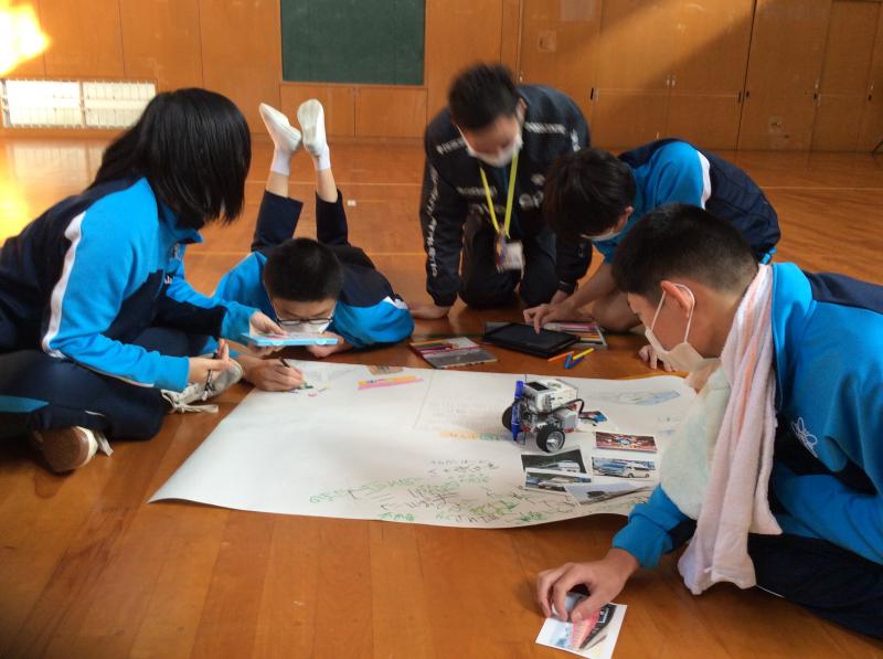 10月から赴任した社谷内先生と一緒に、「プログラミング学習」に挑戦しました。iPadと連動しているロボットを、まずはクラスごとに協力してプログラミングし、指定されたコースを動かすことに挑戦しました。不慣れな活動に尻込みする生徒が多かったですが、先生からのヒントを元に試行錯誤していました。