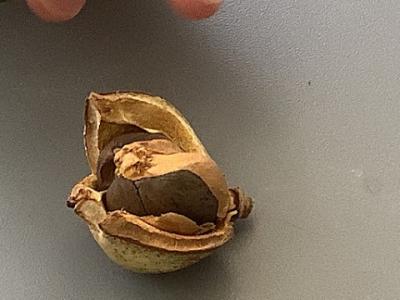 ↓「馬の糞?それともニンニク?」(馬の糞のわけがないでしょうが(苦笑)ツバキの実ですね)
