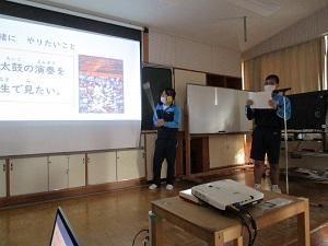 午前中は自分の住んでいる市町の紹介や、押し花アート作品の制作に取り組みました。