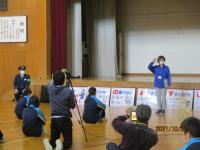 コロナウイルスの感染拡大防止に留意して、体育館をメインに各部の会場へのリモート映像で警察官の方から講話を聞きました。屋外で不審者に声をかけられた時は「いか・の・お・す・し」の行動で助けを求めて自身の身を守るようにすることなど、不審者への対応を教えていただきました。