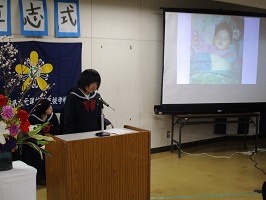 緊張した面持ちで家族への感謝の気持ちや将来の夢、これから頑張ることを述べる生徒の顔は凛々しく、そして晴れやかなものでした。
