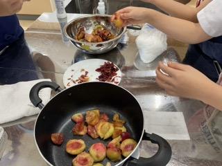 各グループ1kgずつの木津桃を使って、レシピを確認しながら協力して作ることができました。