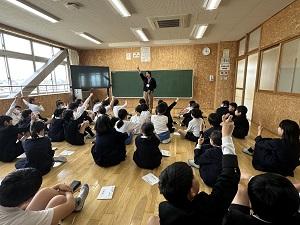 税理士の伊藤先生から税金についての話を聞き、自分たちの身近なことと関連づけながら税金について知りました。税金がどんなところで使われているのか、教育関連の税金は年間で一人当たりいくらくらいなのか、税金の種類についてなど、クイズをしながら教えていただきました。また「公平」に税金を集めるためにはどうすればよいのか、「公平」に税金を使うためにはどんなことに使えばいいのかなどについて考えました。今後の生活の中でこれからも考え続けられるといいですね。