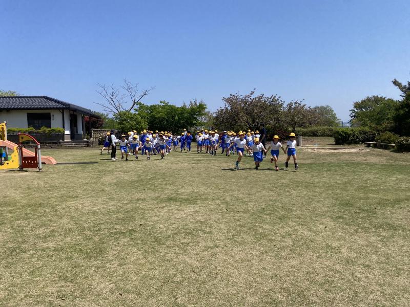 とてもよいお天気の中,「元気に歩いて なかよく遊ぼう」をめあてにして