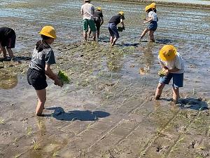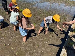初めて田植えをする子も多く、泥の中に足を踏み入れると、その感触に悲鳴も聞こえてきましたが、作業を続けていくうちに、「なんだか気持ちいい!」「田植え楽しかった!」という声がたくさん聞こえてくるようになりました。