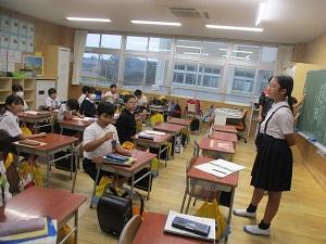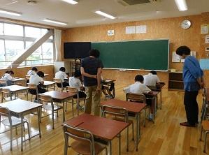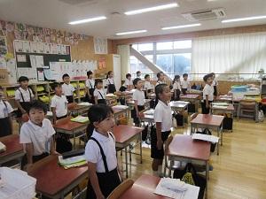 3連休明けの火曜日です。今日から「運動会特別日課」が始まりました。毎日の暑さ対策や体操服洗濯のことも考えて、本日から中学校同様体操服での登下校を可としました。朝から体操服で登校している子もいれば、制服での登校の子もいましたが、運動会に向けて暑さ対策に十分配慮していきたいと考えています。