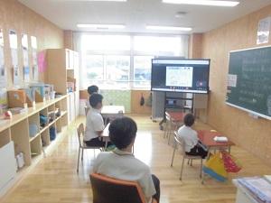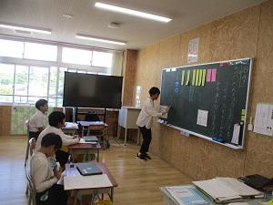 のぞみ学級の3人の子供たちが、国語科「ことばで道案内」の授業をしました。この授業は、郡市教育課程研究会で多くの郡市特別支援学級部会の先生方に見ていただくために録画をした授業で、学校の職員も参観させてもらいました。一人一人が自分の書きやすい方法を選んで記入したりまとめを書いたりする姿が見られました。3人のアットホームな雰囲気と、個別最適な学びと協働的な学びが随所に見られた素敵な授業でした。