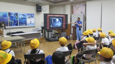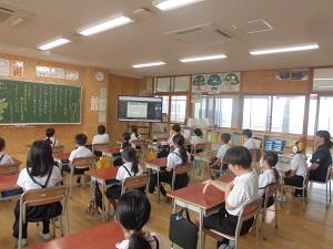 本校の3年生に在籍する児童の一人が、お家で家族と一緒に設計した船をプログラミングのコンクールに出すということで、ぜひプレゼンテーションの練習をさせてほしいと申し出てきました。そこで15日のお掃除後の帯タイムに、学年で発表会をしました。波の動力でエアーをつくりタービンを回して電気に変える仕組みや、船のいろんな箇所に取り付けた360度カメラをVRで見ることができる仕組みなども紹介してくれました。3年生の子供たちは「どうしてそんなことができるの~?」とびっくりすることばかりでした。ぜひ、本番でも頑張ってくださいね。応援しています