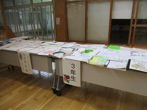 3年生の教室には、わりピンで回転する工夫を生かした工作や、2つの詩を読んでイメージした絵を描く図画が掲示されていました。同じ詩を読んで感じることが違うように、それを絵で表現すると、ますます感じたイメージの違いが現れてきます。そんな子供たちの作品を見ると、心がとても温かくなります。小さな芸術家たちの世界に1つしかない作品、子供たちがお家に持ち帰ったら、ぜひほめて、飾ってあげてくださいね