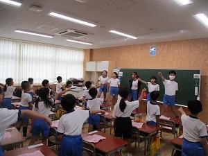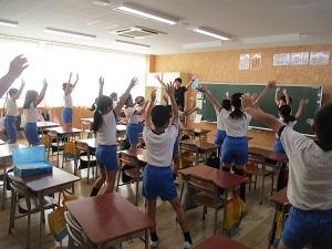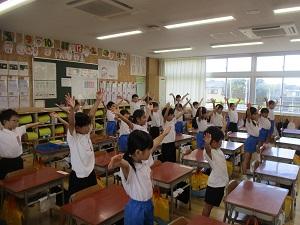 2学期も水曜日の朝学習の時間は、げんきっずタイムです。げんきっず委員会のみんながそれぞれのクラスに分かれて、げんきっず体操をした後に、体つくりの体操をしています。