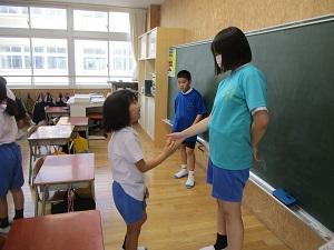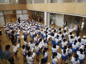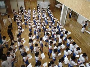 5限後、玄関で子供たちを見送っていると、晴れ晴れとした笑顔がとてもステキでした。これは、きっと子供たちが明日からの夏休みを本当に楽しみにしているのでしょう。終業式の中でも、「宿題をがんばりたい」「科学研究をしたい」「旅行が楽しみ」など、嬉しい声も聞かれました。私たちまで嬉しくなりました。