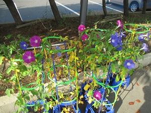 昨日と比べて少し涼しい朝でしたね。1年生が育てているアサガオが、とってもきれいな花を咲かせています。
