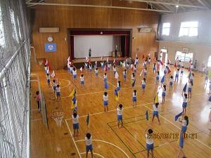 体育館では、5・6年生が運動会で披露する表現のフラッグの部分を練習していました。速いテンポの音楽に合わせて一体感を出すのはとても難しいですね。この後組体操にも取り組むとのことです。さすが、高学年心にのこる演技が期待できそうです。怪我や熱中症に十分気を付けて、頑張ってくださいね。応援しています