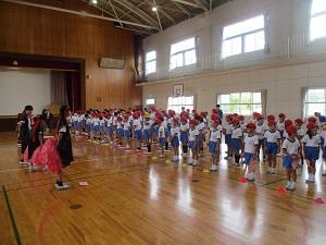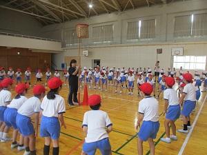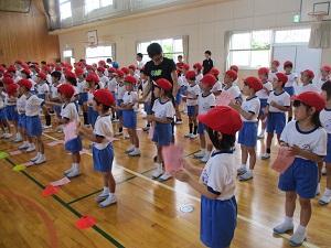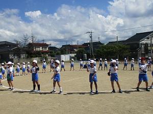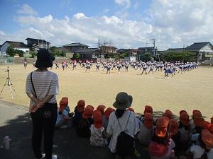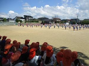 運動会の練習をはまなす子ども園の年長さんが参観に来てくれました。とても暑い中、ありがとうございました。1・2年生は、来年入ってくる年長児さんや子ども園の先生の前ということもあり、一生懸命頑張っていました。入学して半年ですが、とっても成長した1年生を見てたくさんほめてくださいました