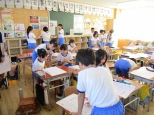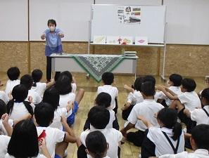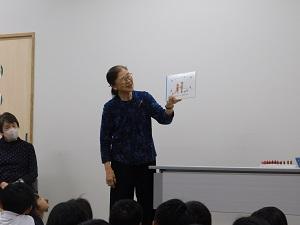 3限目には3年生を対象としたやまんばさんのお話会がありました。柿の絵本など季節のお話に加えて、3年生はあまんきみこさんの「ちいちゃんのかげおくり」の学習をします。それに関連した戦争のお話を紹介していただき、「りんこちゃんの8月1日」を読み聞かせていただきました。やまんばさんのお話会を通して、優しい気持ちや強い力、広い知識を心にためていきたいものですね。