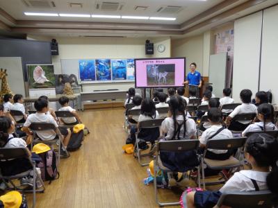 また,いしかわ動物園の獣医さんと飼育員さんからお話を聞くこともできました。1年生は「どうぶつの赤ちゃん」2年生は「どうぶつ園のじゅうい」の国語の内容ともつながりよい学習になりました。