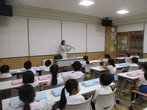 1年生は2限目に鍵盤ハーモニカ講習会がありました。昨年も来てくださった先生で、鍵盤ハーモニカの特徴や学習のルールなども含め、楽しく教えてくださいました。本当にありがとうございます。