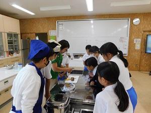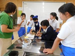 5年生は、能登の復興支援のために私たちができることを考え、「七キラカンパニー」という会社を立ち上げて活動しています。1学期は、七塚の海で地引網をし、獲れた魚をどんたくさんで売らせていただきその収益を募金させていただきました。2学期は、田んぼで収穫したお米を使ってスイーツをつくり、その売り上げを募金しようと今お米を使ったスイーツづくりに挑戦しています。そこで今日は、地元でケーキ店を営んでいる「ラフィネ」のパティシエの方に来ていただき、自分たちの試作に対してアドバイスをいただくことができました。今後教えていただいたことをもとに、また試作を重ね、何とか販売できるスイーツになるといいですね。ラフィネさん、お忙しい中、どうもありがとうございました。