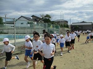 今年からは、基本的に全員がこの業間運動に参加することとし、低学年は運動場トラック、中学年は運動場外周、高学年は校舎周りを走ります。今日は曇り空で、少し風もあり、みんな元気に走っていました。25日までどれだけ走れるかできっと記録会では昨年を越える記録が出ることでしょう。走った距離は決して裏切りません。そして、順位ではなく自分の記録を超えることが目標、つまり自分との挑戦です。頑張れ、七塚っ子心から応援しています