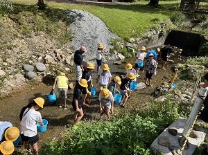 そのあと、今日はみんなでメダカの水槽の掃除をして水替えをしました。春に卵からふ化した小さな赤ちゃんメダカもかなり大きくなったので、水槽に入れてあげました。とってもきれいになって、メダカたちも喜んでいることでしょう。これからも、大切に育てていきましょうね。