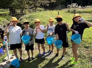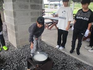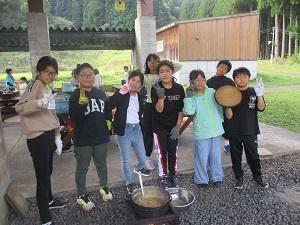 5年生の宿泊体験体験2日目。良いお天気にも恵まれ、計画していた通りのスケジュールを今日も行うことができました。午前中は、野外炊飯でカレーライスを作りました。お米を研いで、かまどで炊いて、カレーも野菜を切るところから作りました。もちろんかまどでのまき割りや火の調節も頑張りました。どのチームもとってもおいしく仕上がりましたよ。この3日間、けがも病気もなく無事全員が帰ってくることができて本当によかったです。ご指導してくださった小松市大杉みどりの里の職員の皆さん、そしてこの合宿にご理解ご協力いただいた保護者の皆様、本当にありがとうございました。