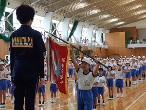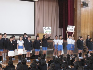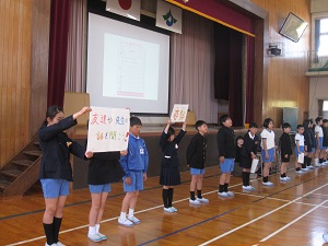 児童会目標は『思いやりの心をもち、笑顔がたえない七塚っ子』