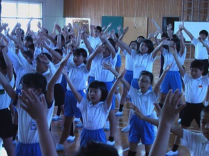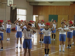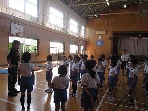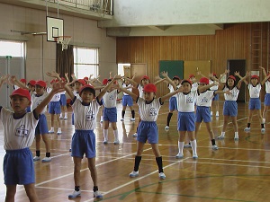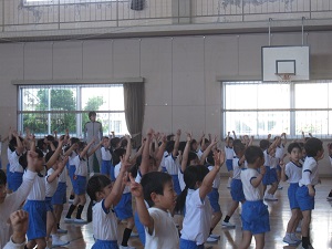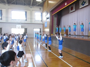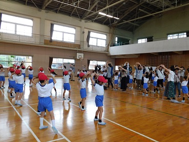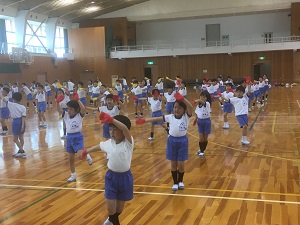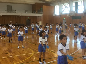 4月初めの水曜だったので,全校でげんきっず体操を行いました。