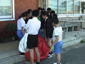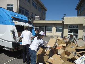 今年度初めてのアルミ缶回収を行いました。2年生保護者の担当の方が、朝からたくさんの缶をつぶしてくれました。