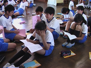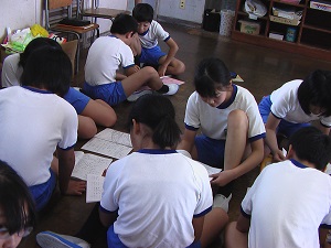 前期企画委員がリードしながら、学校目標である「いじめのない、楽しく学び合う子」になるためには、どうすればよいかと全員で真剣に考えていました。