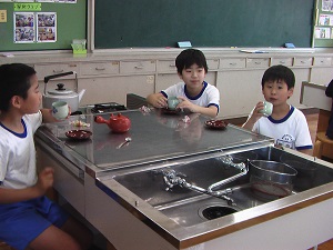 子ども達と一緒に試食をしました。