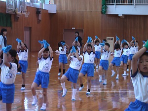 朝から元気な歌声とともに運動しました。