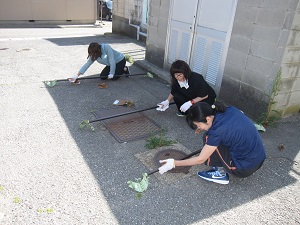 今日はプールの除草作業を5年生がしてくれました。