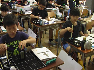 今年度は、PFUの協力を得て、6月に4年生、9月に5・6年生がプログラミングの体験授業を行います。