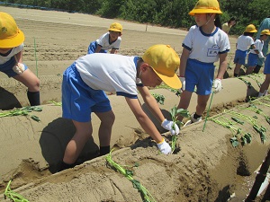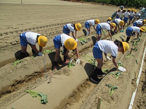 入学して2週間の1年生。すっかり七塚小学校の一員となり、勉強をがんばっています。