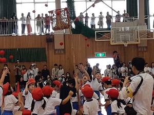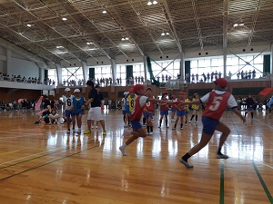 次は、自分たちの番!と、3年生も小体育館から見学しながら応援していました。