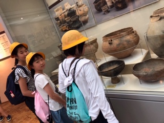 縄文時代の服を着たり、火起こしを体験してみました。火を手軽に使える今とちがって昔の生活は大変だと感じたようです。