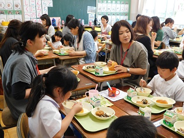 1年生の保護者の皆さんを招いて、給食試食会をしました。