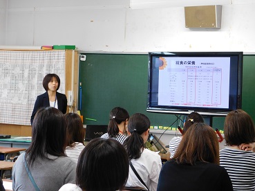 その後、学校給食の献立を作られている栄養士の小鹿山さんに、学校給食の栄養のお話や、ご家庭での食事についてのお話をうかがいました。