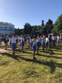 晴天に恵まれ、気持ちよく朝の体操ができました。