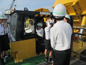 また、こまつの杜で、世界最大規模のダンプカーを見て、こんな小さな操縦席からタイヤを動かせるなんて…。と驚いていました。