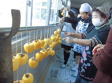 4人の地域ボランティアさんに来ていただいて、5年生全員で干し柿とさわし柿に挑戦しました。