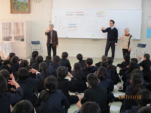 児童はふり返りで,「演出が格好よかった」「最後に命がけで助けようとしたのに感動した」等の感想を話していました。普段なかなか目にすることのない演劇を見て,心動かされるものがあったようです。