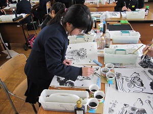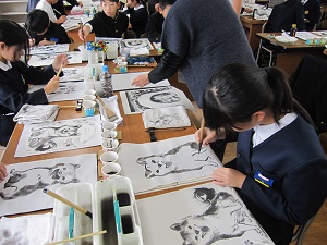 3種類の墨の濃淡を上手く使い分け,描くことができました。