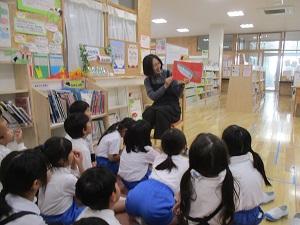 今日の給食はハンバーグカレーでした。そしてこのメニューは、宮西達也さんが書いた「ほうちょうさんききいっぱつ」という絵本から飛び出た給食「絵本給食」です。それにちなんで、今日の長休みには、図書館で学校司書さんによるお話会もあり、たくさんのお友達が来てくれました。大好きな絵本と給食がコラボしたとっても楽しい企画ですね。金曜日にも「絵本給食」が予定されています。どんなメニューかな?どんな絵本かな?楽しみですね。