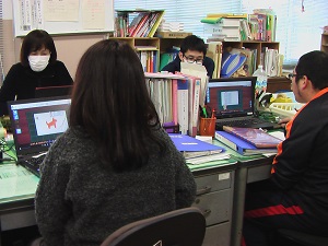 プログラミング教育 投稿日時 : 2019/02/08 級外 来年度からプログラミング教育に取り組んでいくために、情報担当教諭を講師に校内研修を行いました。子ども達に、プログラミング的な思考力をつけていくためにどう活用すればよいか、どの先生も真剣に考えながら学んでいました。