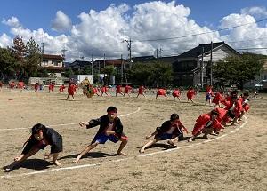 3限目は、昨日雨でできなかった「予行」(開閉会式、げんきっず体操、応援練習)です。やっと外で練習することができました。